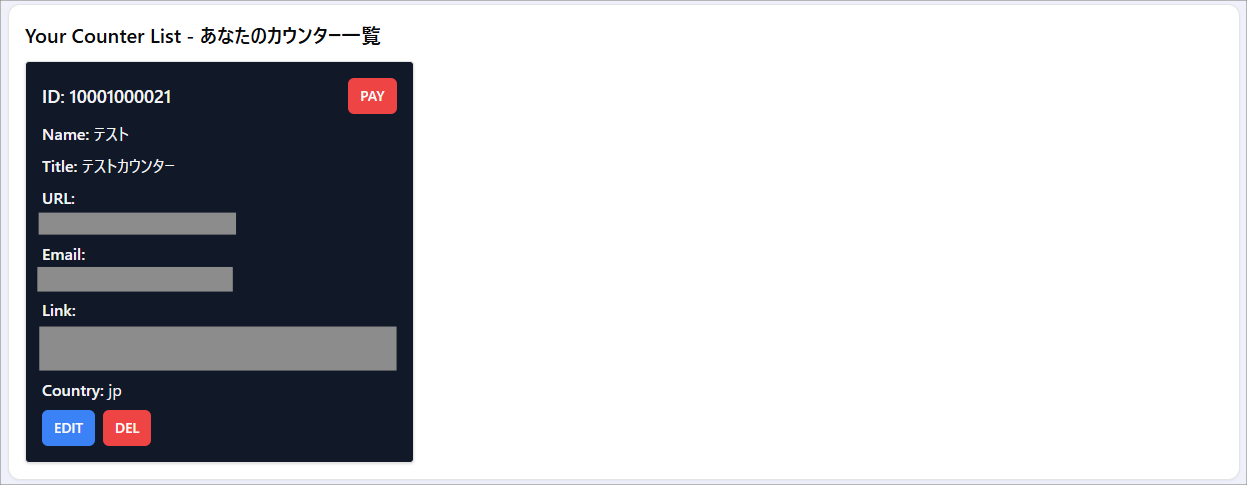 「Your Counter List」に、作成したあなたのカウンタールームの一覧が表示されます。